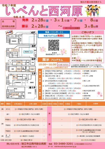 狛江市立西河原公民館 電話 3480‐3201 メール nishikou@city.komae.lg.jp