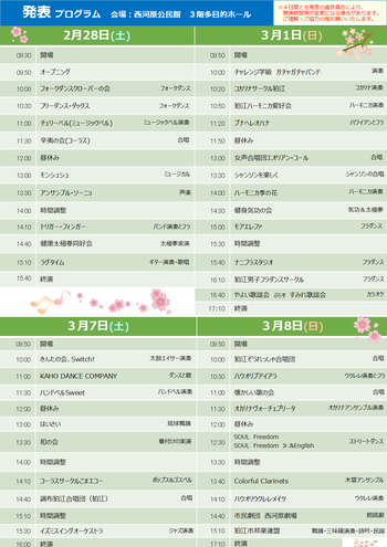 いべんと西河原【発表(コンサート)・展示(体験・販売含む)】