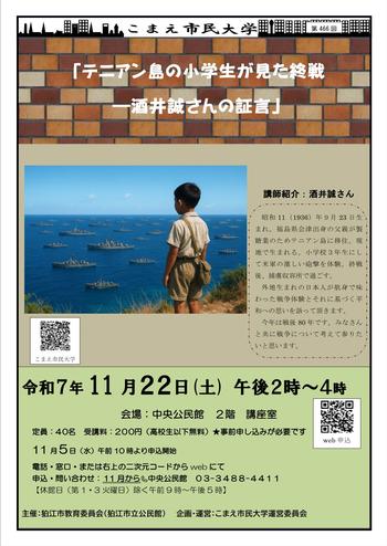 こまえ市民大学「テニアン島の小学生が見た終戦ー酒井誠さんの証言」(令和7年11月22日)