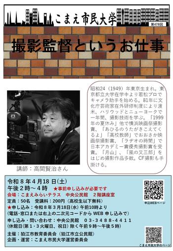 こまえ市民大学「撮影監督というお仕事」(令和8年4月18日)