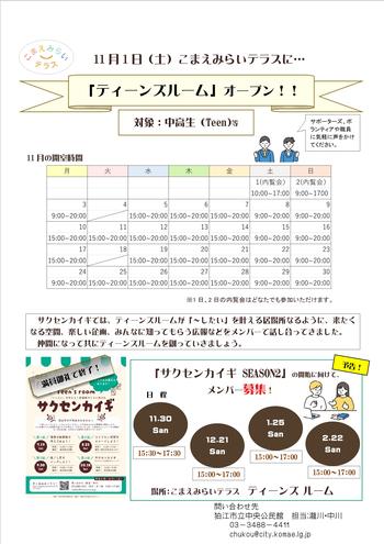 また、11月からも継続してサクセンカイギを実施し、利用してみて思ったことや、利用にあたってのルールづくりなど、利用者の方の意見を聞きながらティーンズルームを盛り上げていきます。