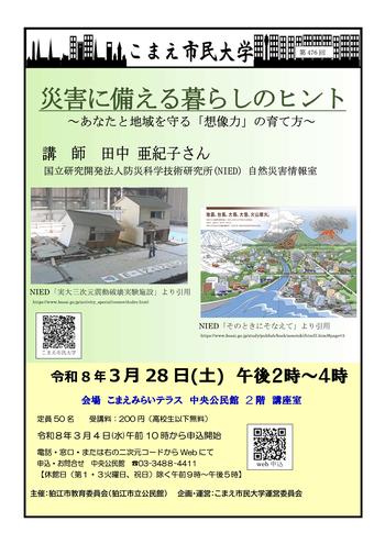 内容:災害に備える暮らしのヒント ~あなたと地域を守る「想像力」の育て方~